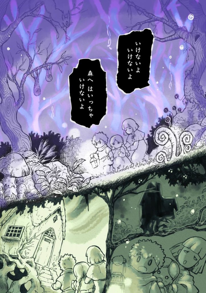 「ファンタジー漫画」というと世界中を飛び回るような大冒険活劇!を想像する方も多いのではと思いますが、「アザミの森」は(固有の名前すら明かされていない)「森」と「村」の間だけで完結する、とても狭い範囲での物語です。