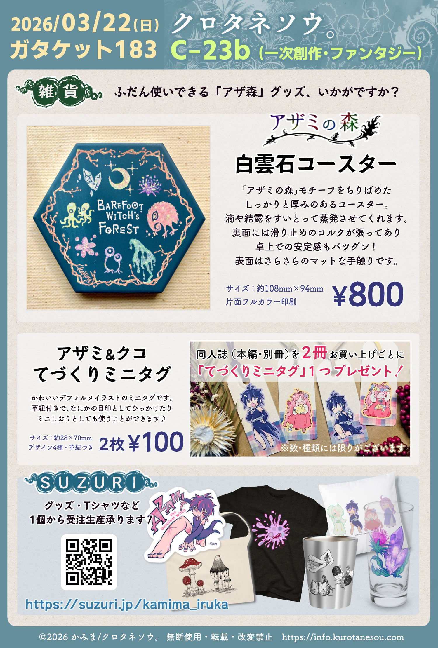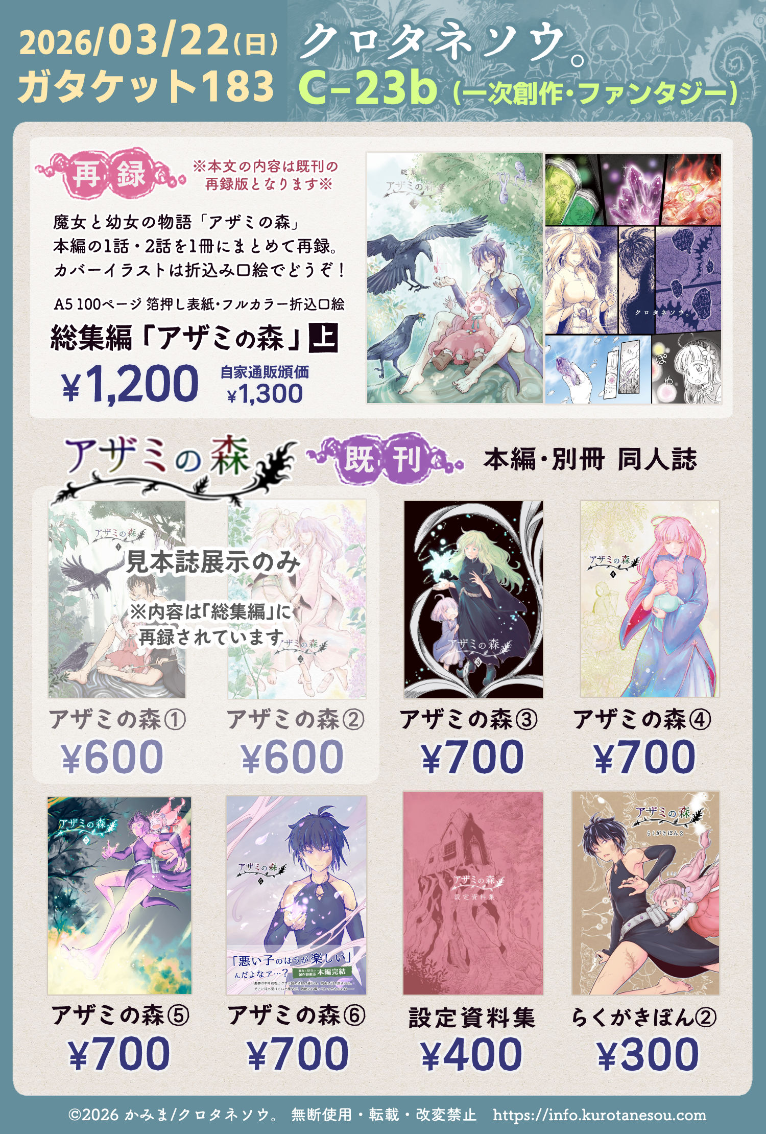 なお当サークル「クロタネソウ。」の自家通販は通年ひらいております。